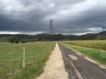 I caught up with Anick on the other side, at another little church, but this one was locked. It had a water point and some picnic tables for pilgrims to stop. Pru was there, and she offered me half of her sandwhich. I told her I didn’t want to stop because I wanted to try to stay ahead of the rain. She said she didn’t think it would rain. 5 minutes later it was raining.