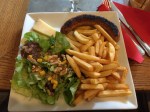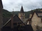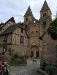 Conques is billed as one of the most beautiful cities in France. I got in about noon, and it rained off and on all afternoon. I saw Anick, and Monique and the two Francoises, and Megan, and Pru and Bronnie, and Etienne’s group. Anick and I were starving, so we got some food. Megan only got a cheese plate because she was down to her last 10 E. Apparently the only ATM machine in town was stolen. Like , ripped out of the wall, stolen. She paid for my room with her credit card and I gave her cash.