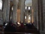 They had a whole program for us tonight after dinner. At 8:30 there was another prayer service, very similar to Vespers, which was before dinner. Then at 9 a guy stood out in front of the church (cathedral?) and explained the thing over the door. I guess it’s called a tympanum. I thought it had something to do with drums. Too bad it was all in French, because I bet it’s an interesting story. I only caught a few words here and there, and I did hear him say “poor horse”. Then right at 9:30 the organ concert started, and that was truly awesome. We saw some people heading up the stairs, and Megan and I didn’t realize you had to pay until we got up there. I told Megan I would pay for her, it was 6 E. She said it was ok, but I said, “when are you ever going to get a chance like this?” It was kind of awesome. We got to walk all around the second level balcony, and the organ music was very cool. Odd choice of music, but it was still cool. At one point I thought, “Is that really ‘A Whiter Shade of Pale?'” and then he started playing “House of the Rising Sun” for the finale.