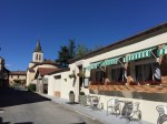 The first city I came to was Bouziès, which seems to be fairly touristy or resorty. I was going to continue on, but as I looked down the street I saw someone waving at me, so I went to check it out. It was Annie and her German friend. They were having a drink. I decided I wanted some food. Because of the weekend, I hadn’t been able to restock my lunch food.