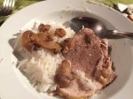 Dinner was delicious. The soup course was zucchini and potato. Then there was a paté course, which was deer, or “Bumbi”. Then the main course was pork cooked in duck fat, and rice with a mushroom sauce made from the drippings. So tasty. Then cheese, then one of the cake things they’re so fond of, made with plums, and it was actually the best one I’ve had so far.