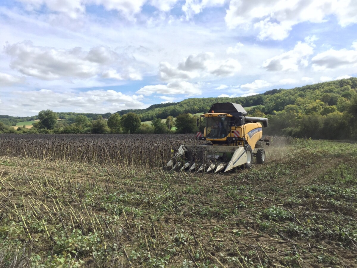 As I walked out of town, I got to see some of the sunflowers being harvested.