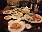 And she didn’t! Estelle knocked on the door about 7:30 and said they wanted to stay here. We went down to the bar/cafeteria area, but we had to wait until dinner started seating at 8:30. Then Sandra decided she didn’t want to sit for dinner, because she had some friends that said they were coming, and she didn’t want to ask them to pay 40 E for a meal. I was a little disappointed. I was looking forward to it. We got stuff from the cafeteria instead to share. Some goat cheese and onions on toast, and some meat and cheeses, and some pasta. I’m still hungry, but that’s ok. I had a huge breakfast and I didn’t walk today. I’m not starving and I will survive.