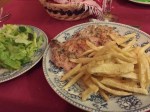 I got pasta, pork and cheesecake. The pasta was absolutely delicious, and I was seriously getting full by the end of it. That is the first time that’s happened. I blame the half chocolate bar that I ate. That was really bad timing. The pork and fries were the best I’ve had in Spain, and I had a really hard time finishing it. That darn chocolate bar! Dessert was a “cheesecake”, but it was quite different from our cheesecake. The texture was a little different, but it also wasn’t very sweet. It wasn’t bad, it was just different.